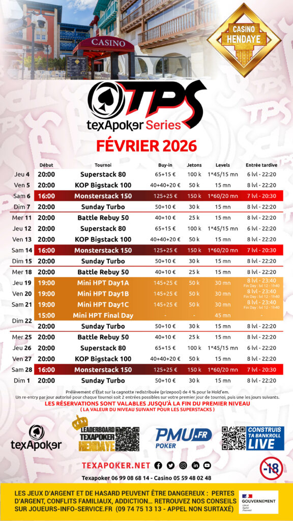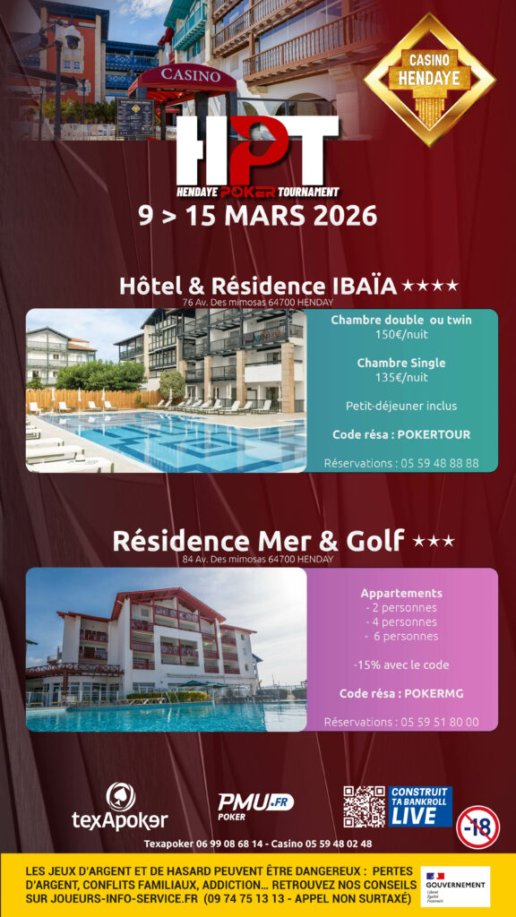• Hendaye Poker Tournament 340€ (9 au 15 Mars 2026)